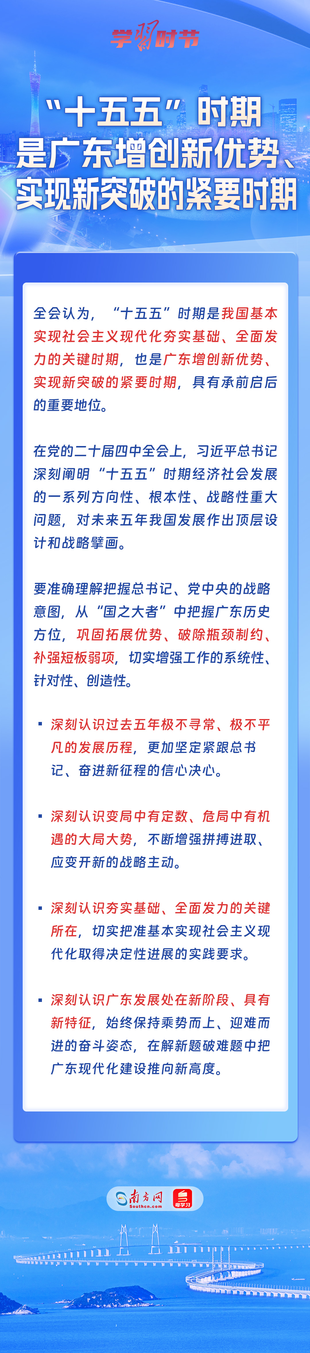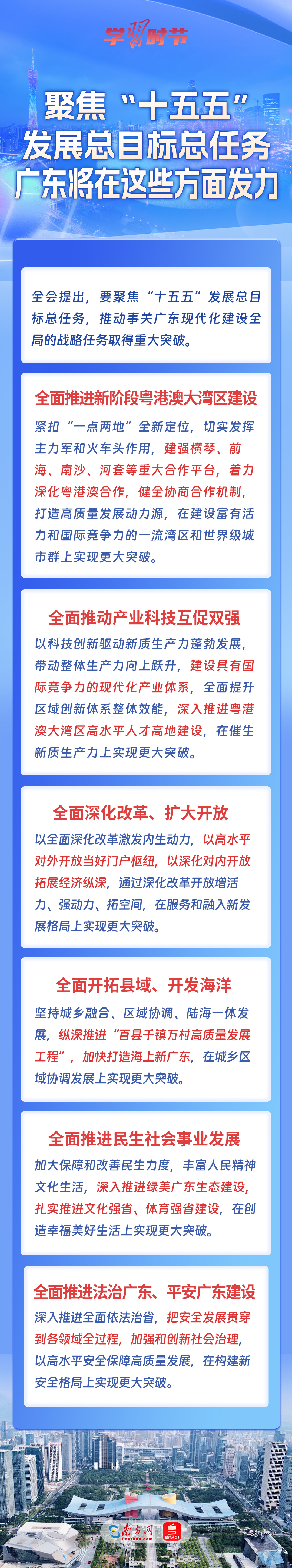 广东将如何把习近平总书记为广东擘画的宏伟蓝图变为美好现实?如何聚焦“十五五”发展总目标总任务,推动事关广东现代化建设全局的战略任务取得重大突破?一起速览《决议》内容。