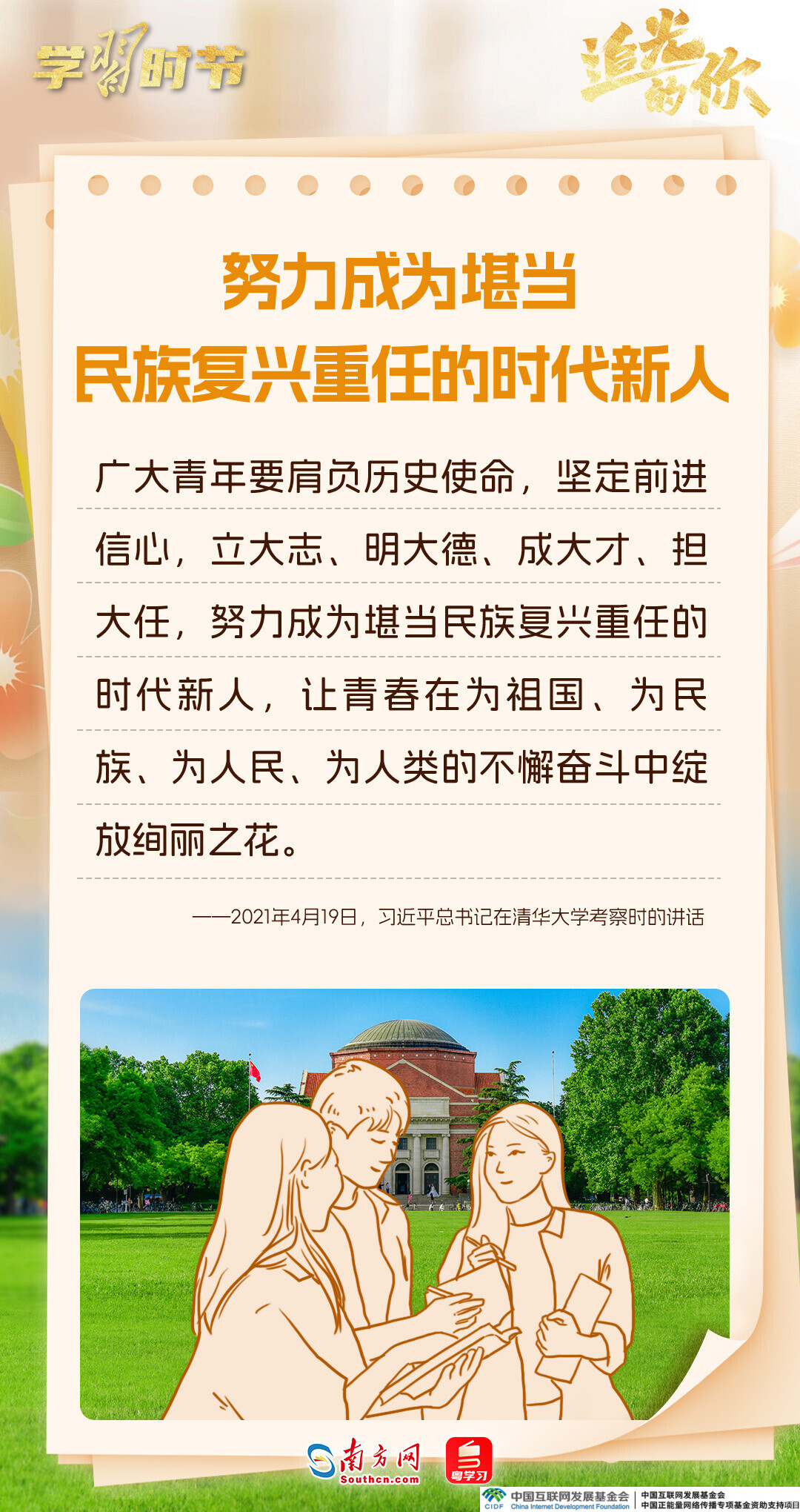 习近平总书记的深情嘱托、诚挚盼望,为广大青年在新时代奋斗征程上点亮航标、指引航向。在五四青年节到来之际,让我们一同重温习近平总书记的殷殷寄语。