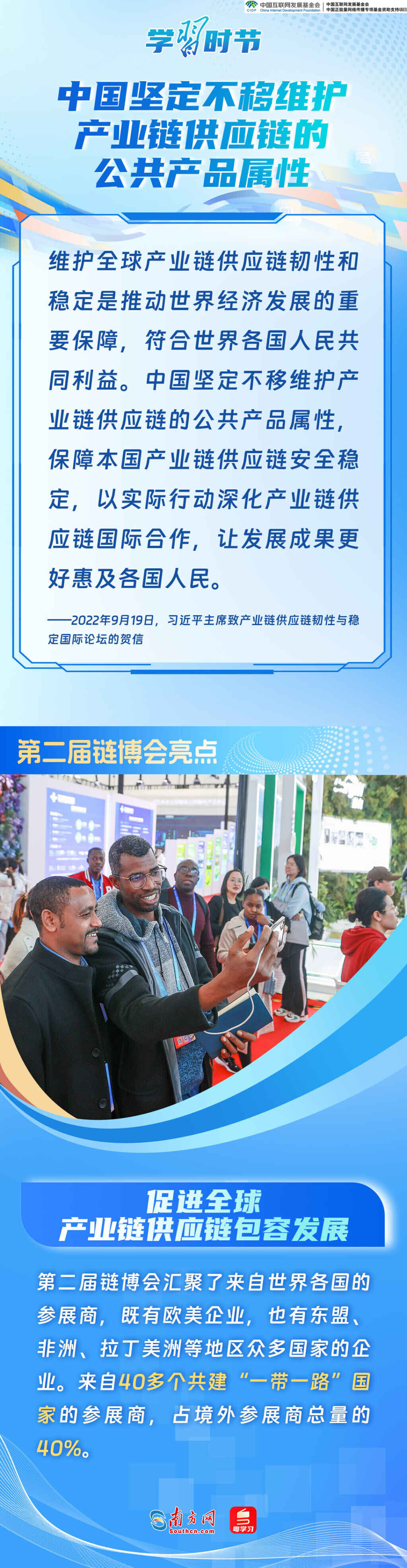 习近平主席心系产业链供应链安全稳定,多次强调中国将以实际行动维护全球产业链供应链安全稳定,为世界各国共同构筑安全稳定、畅通高效、开放包容、互利共赢的全球产业链供应链体系提供中国方案。习近平主席曾在多个重要场合对此作出一系列深刻阐述,让我们一起学习。