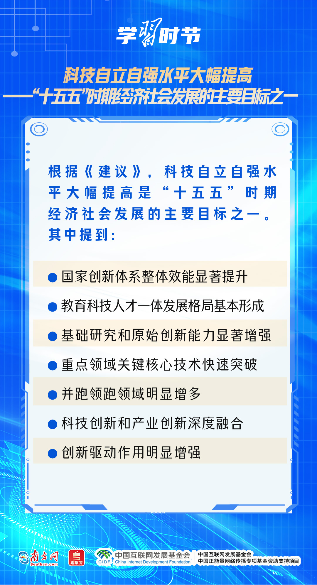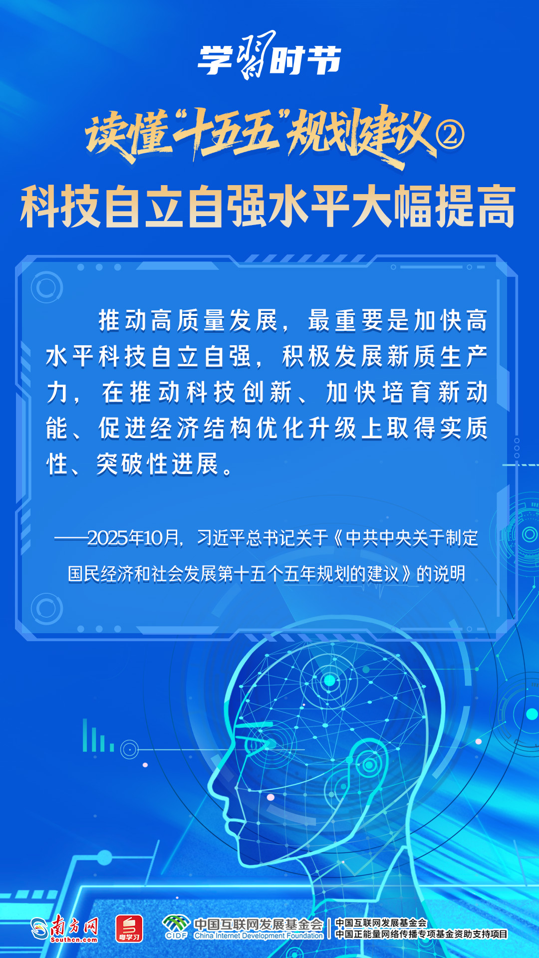 党的二十届四中全会通过了《中共中央关于制定国民经济和社会发展第十五个五年规划的建议》(以下简称《建议》),提出“十五五”时期“科技自立自强水平大幅提高”的主要目标,这是以习近平同志为核心的党中央深刻洞察国内国际发展大势、准确把握科技和经济社会发展规律作出的重大战略决策。