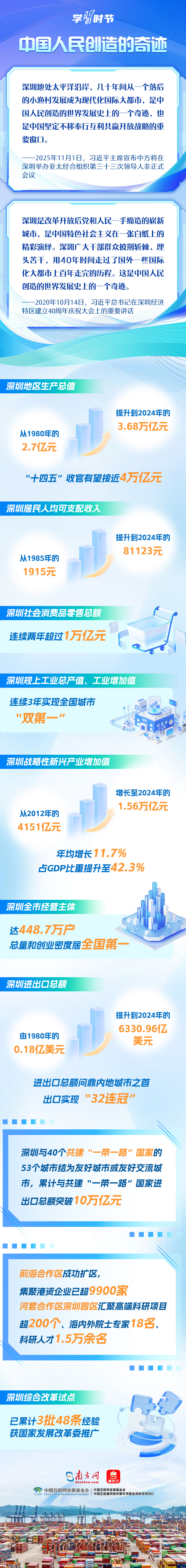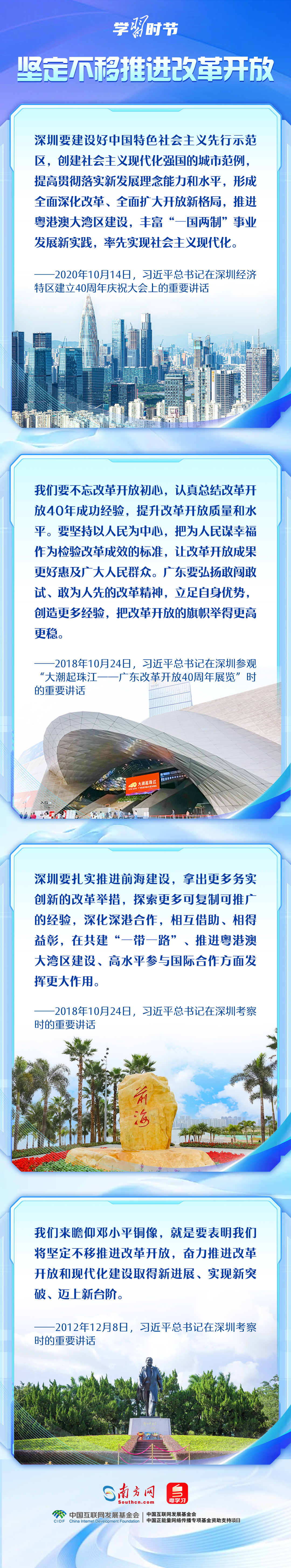 自1980年建立经济特区以来,深圳始终是中国改革开放的“试验田”和“排头兵”。改革开放是深圳的基因,也是其实现跨越式发展的最根本、最强大的动力源泉。党的十八大以来,习近平总书记曾先后三次来到深圳,对深圳作出谆谆嘱托、寄予殷殷期望。其中,“改革开放”这个关键词贯穿始终。