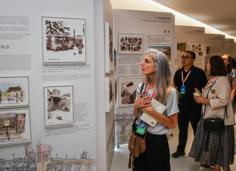 第七次汉学家文学翻译国际研讨会嘉宾在江苏南京参观。