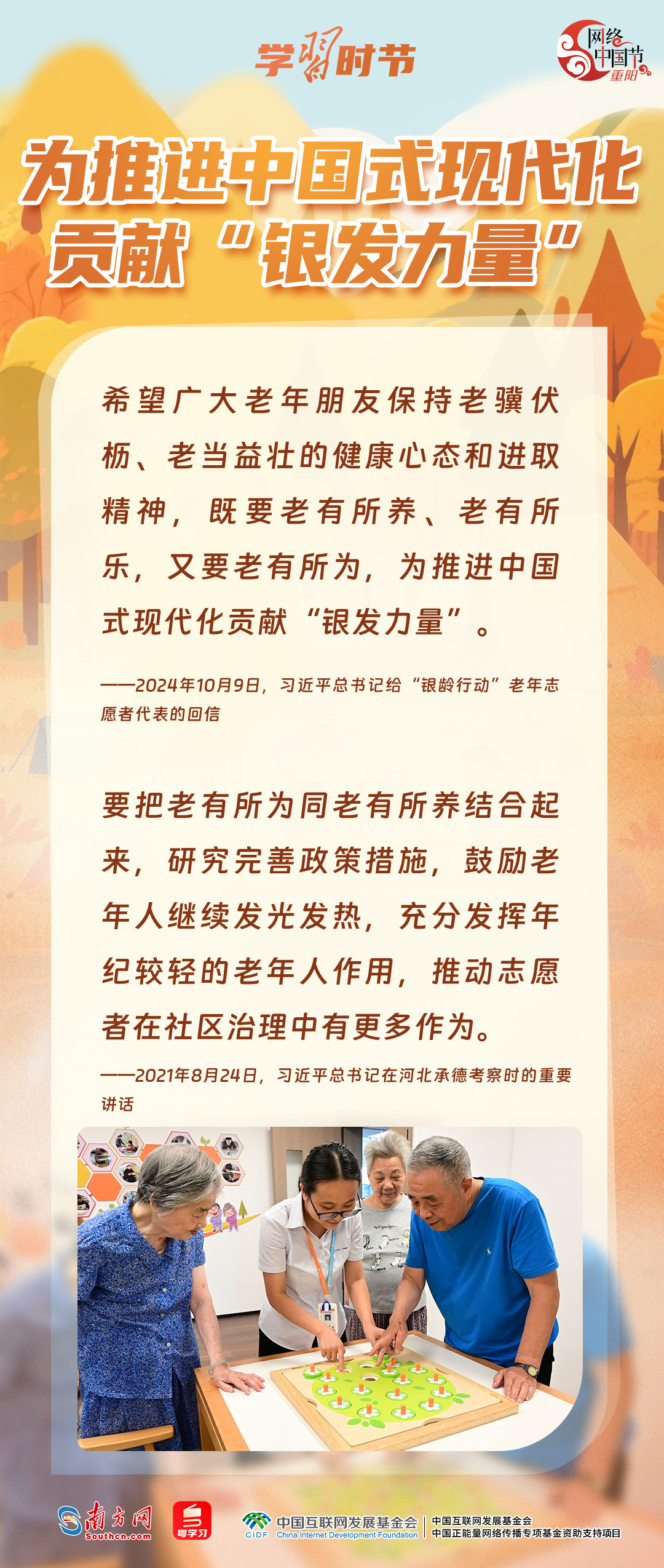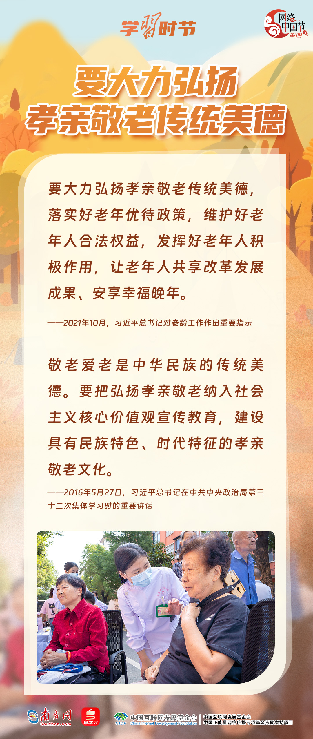 党的十八大以来,习近平总书记十分关心老年群体、重视老龄事业,在多个场合作出重要论述,亲身践行尊老爱老优良传统,引领全社会形成良好风尚,让所有老年人都能有一个幸福美满的晚年。