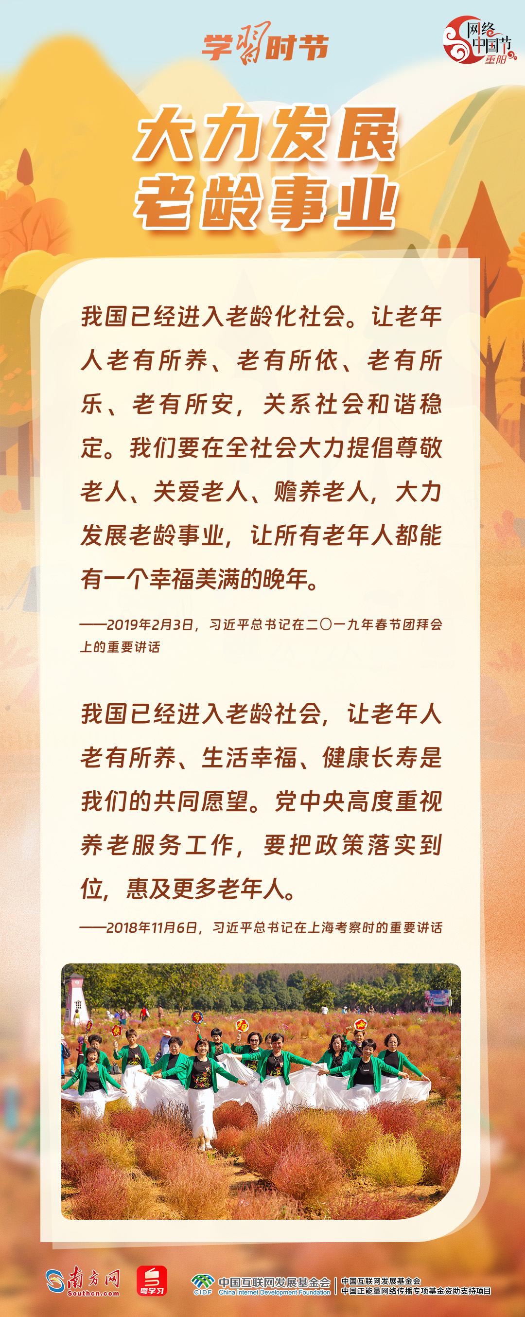 今天是九九重阳节,也是我国法定的“老年节”。让我们重温习近平总书记尊老敬老、爱老助老的暖心话语,感悟他“孝亲敬老”的情怀。