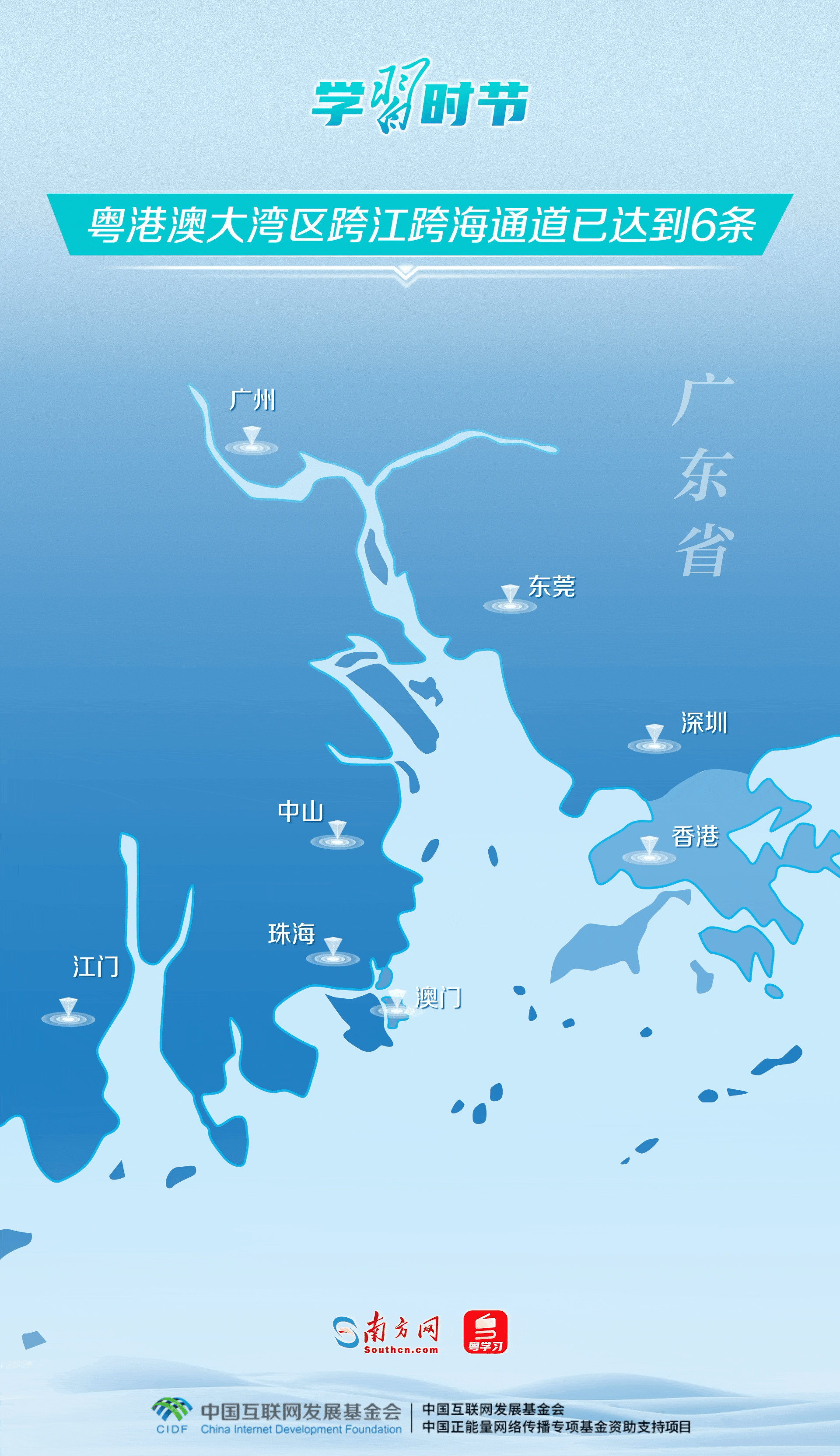 去年,深中通道、黄茅海跨海通道相继建成通车,大湾区跨江跨海通道已达到6条,珠江口两岸紧密“牵手”,大湾区主要城市间1小时通达基本实现。