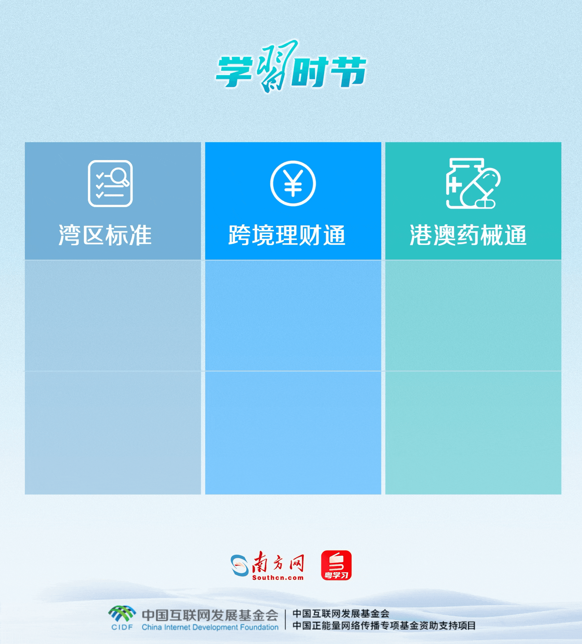 “湾区标准”创新大湾区标准服务供给模式和规则对接路径;“跨境理财通”实现内地与港澳金融市场的双向互通;“港澳药械通”打通创新药械快速进入内地的通道……近年来,一批标志性事项的落地实施,解决了大湾区居民关注的热点难点问题。