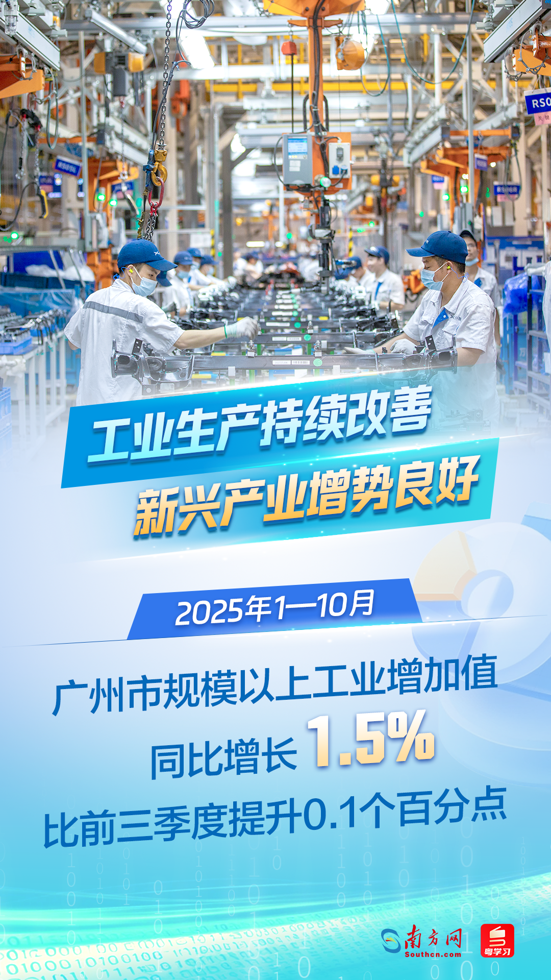 11月24日,广州市统计局发布2025年1—10月广州经济运行情况。数据显示,1—10月,广州经济稳的基础不断夯实,进的动能持续积蓄,彰显较强的韧性和活力。