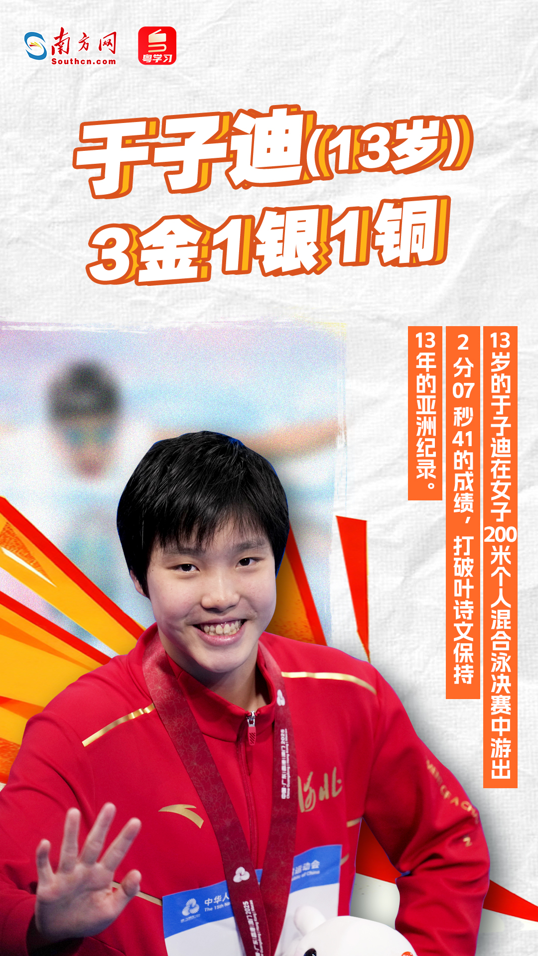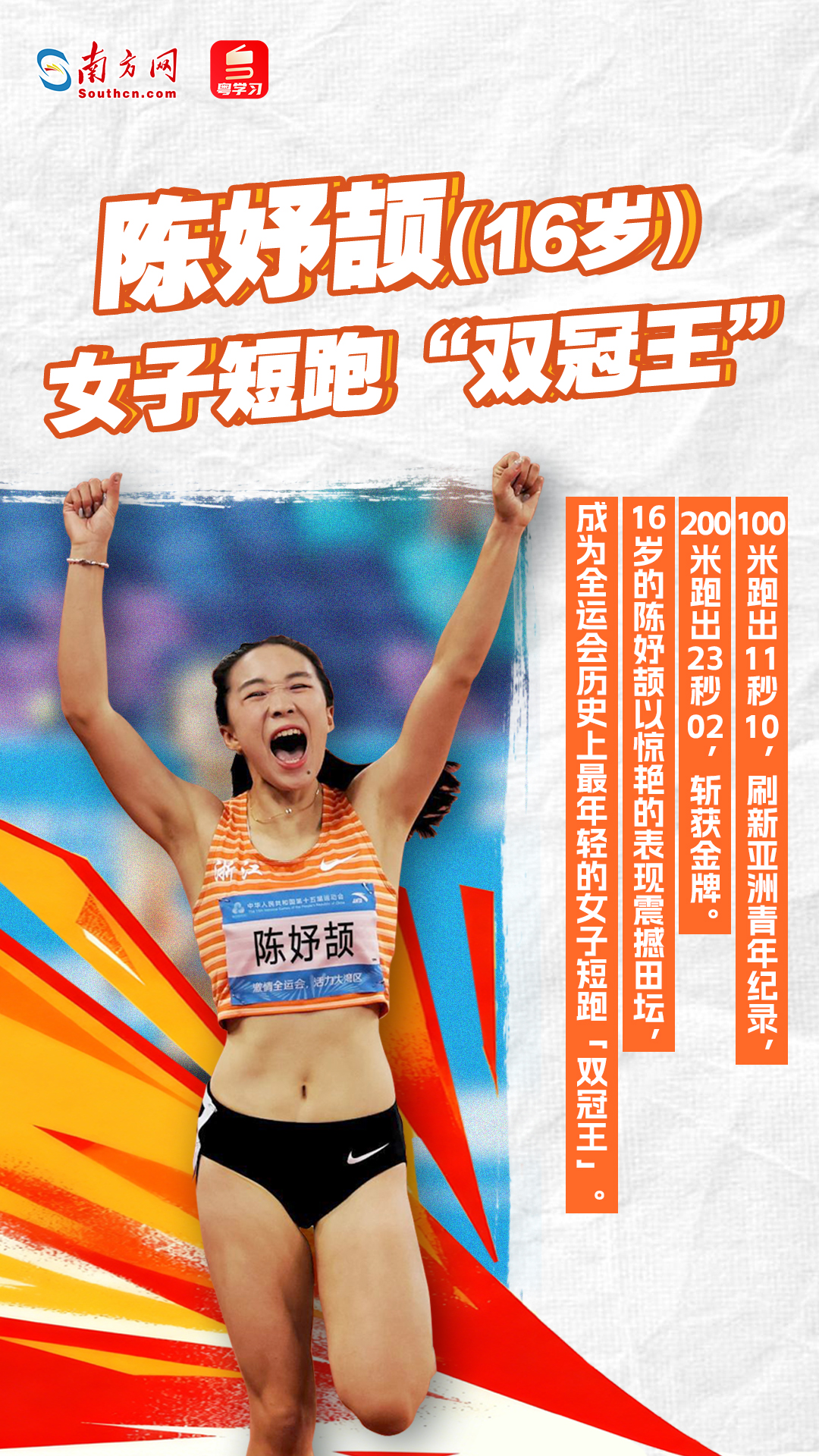 13岁于子迪刷新亚洲纪录、16岁陈妤颉成为全运会历史上最年轻的女子短跑“双冠王”、18岁张展硕包揽五项金牌……这些稚气未脱却身手不凡的“小孩姐”“小孩哥”,在游泳、跳水、滑板、田径等多个领域刮起“青春风暴”,他们不仅积极参与,更是以出色表现挑战着不少成名已久的冠军名将。这些少年健儿们,用实力与汗水,在全运会赛场上书写着中国体育的未来。