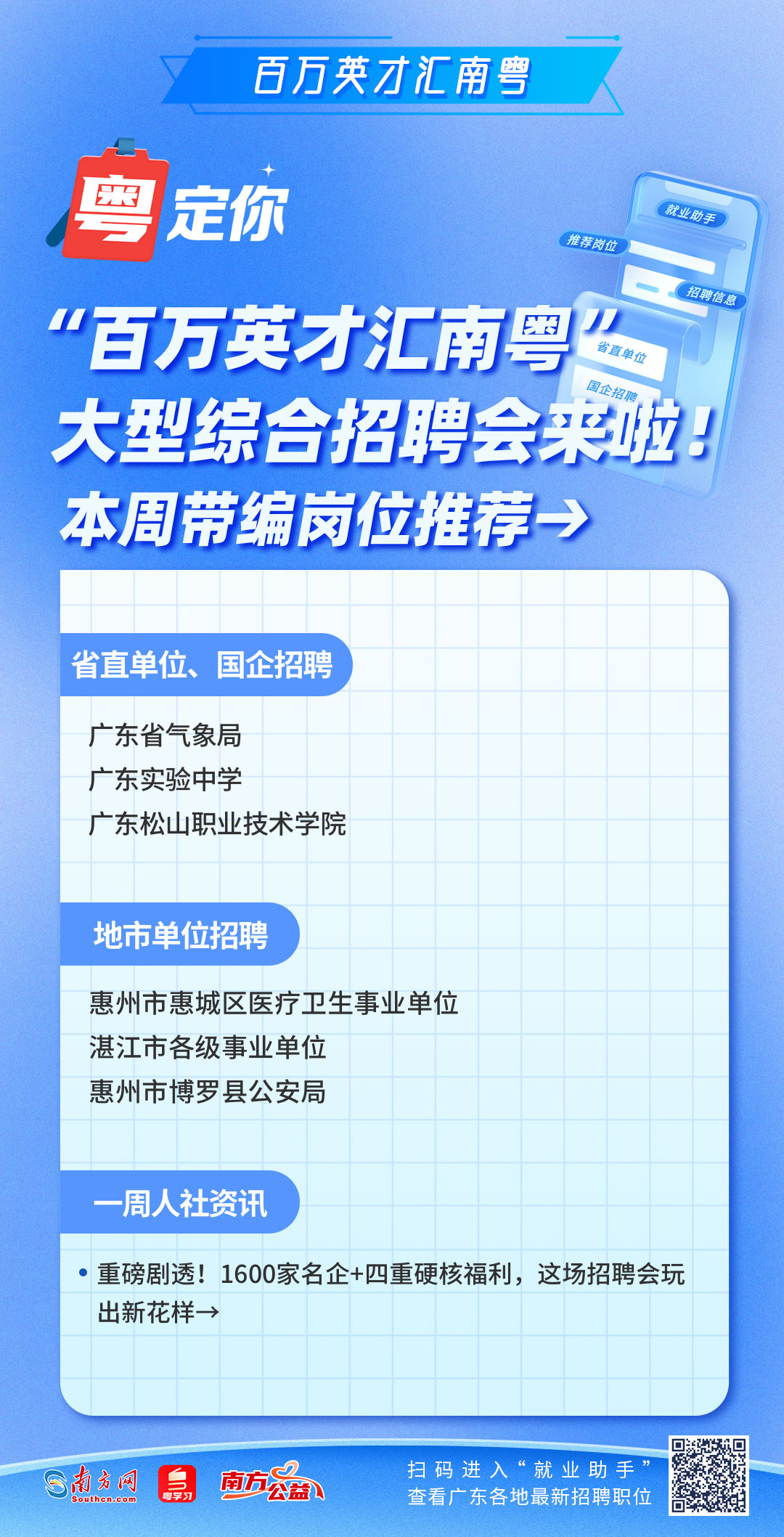 南方网、粤学习客户端本周为你梳理汇总的最新就业资讯来了!