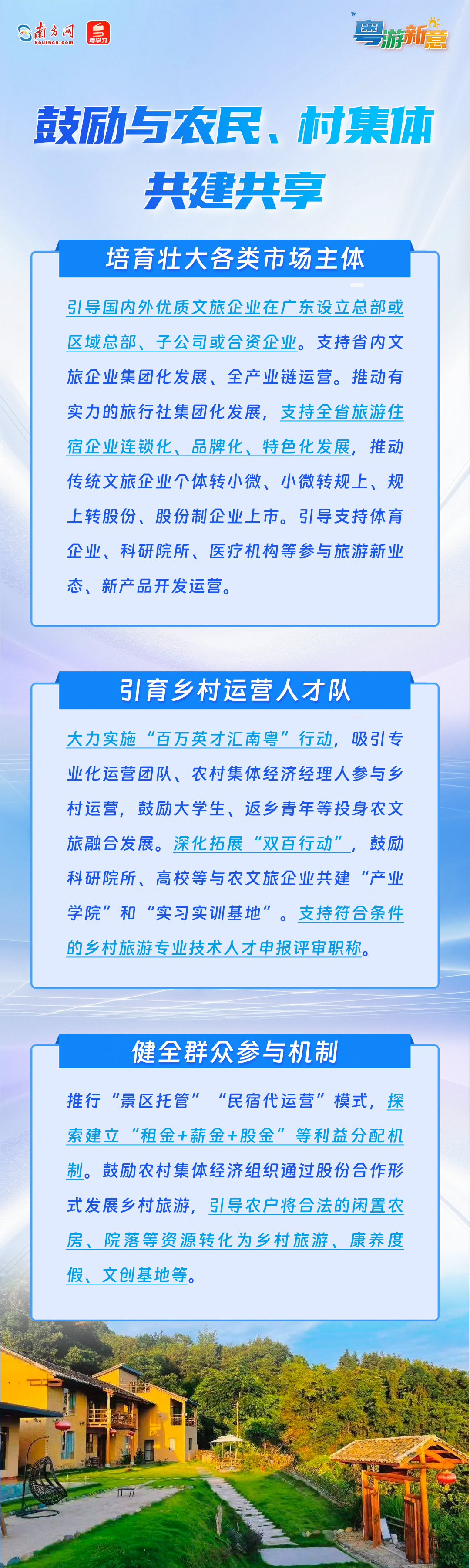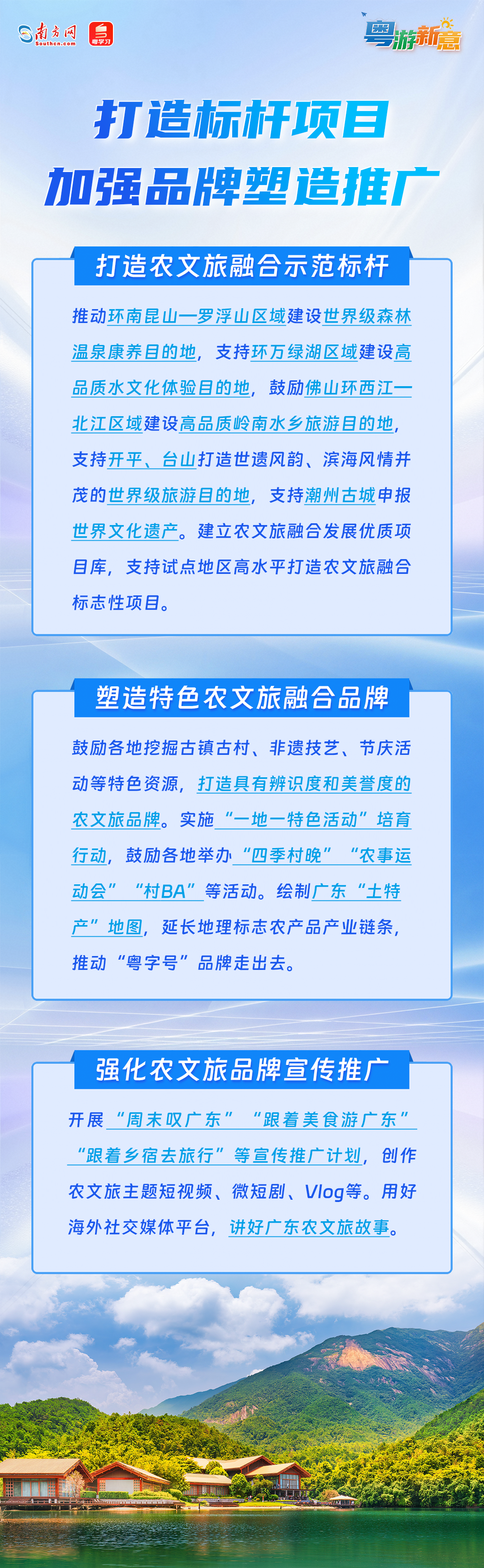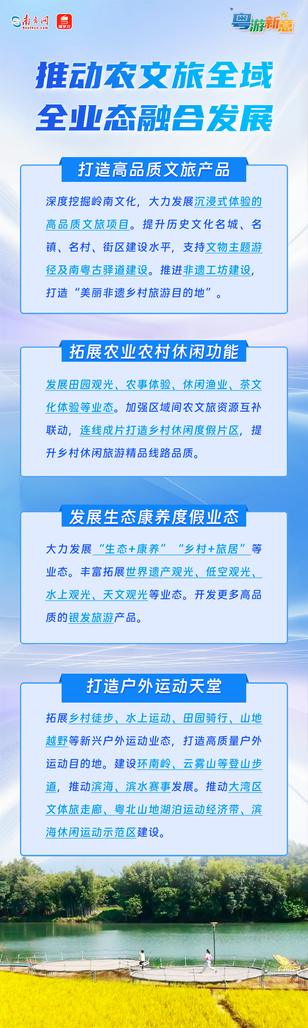近日,广东省“百县千镇万村高质量发展工程”指挥部办公室牵头制定的《关于促进农文旅融合高质量发展的若干措施》(简称《措施》)印发,明确提出广东要建设全国领先、世界知名的农文旅深度融合高质量发展先行地,打造广东特色鲜明、岭南韵味彰显、文旅产业强劲的全国农文旅融合发展样板。