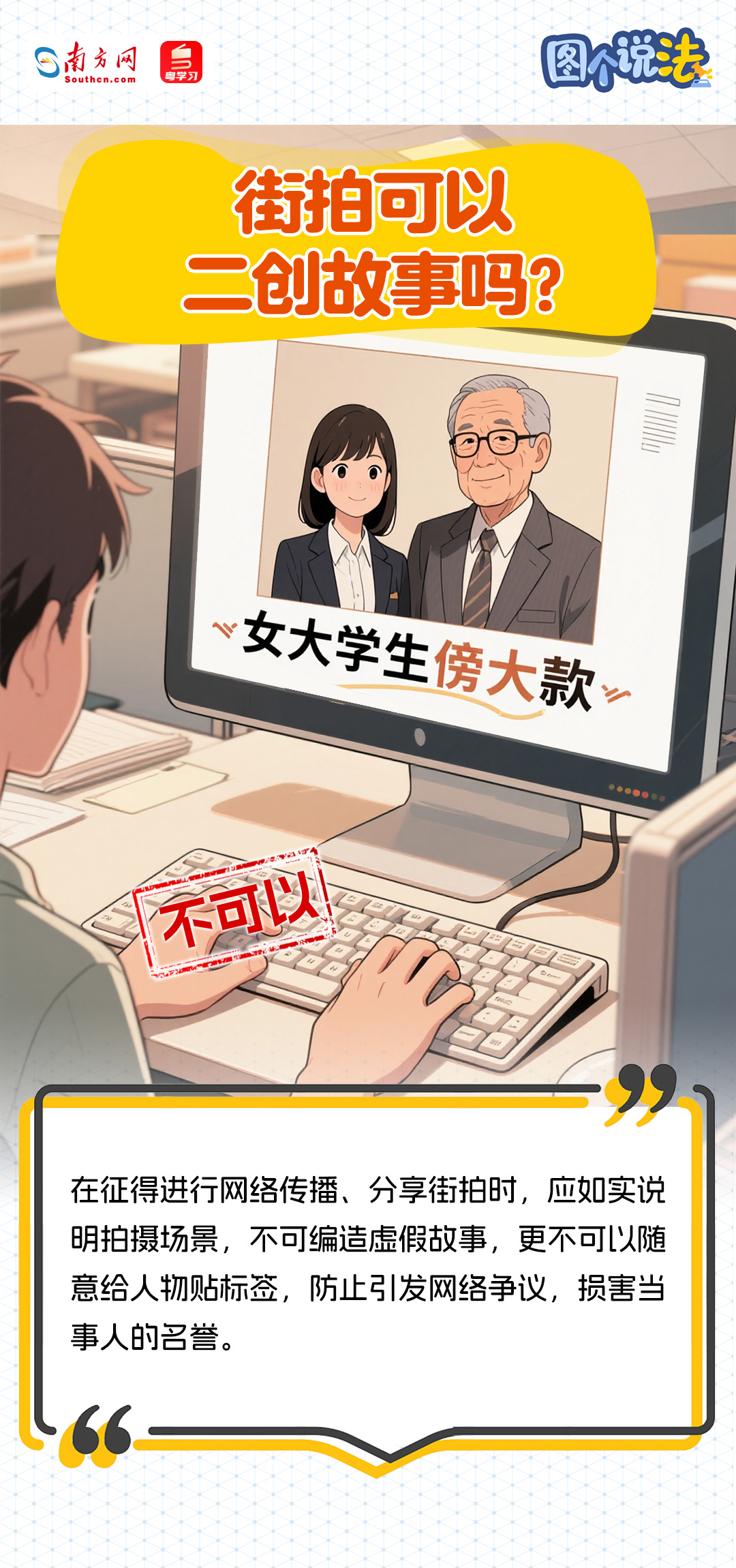 在进行网络传播、分享时,应如实说明拍摄场景,不可编造虚假故事,更不可以随意给人物贴标签,防止引发网络争议,损害当事人的名誉。