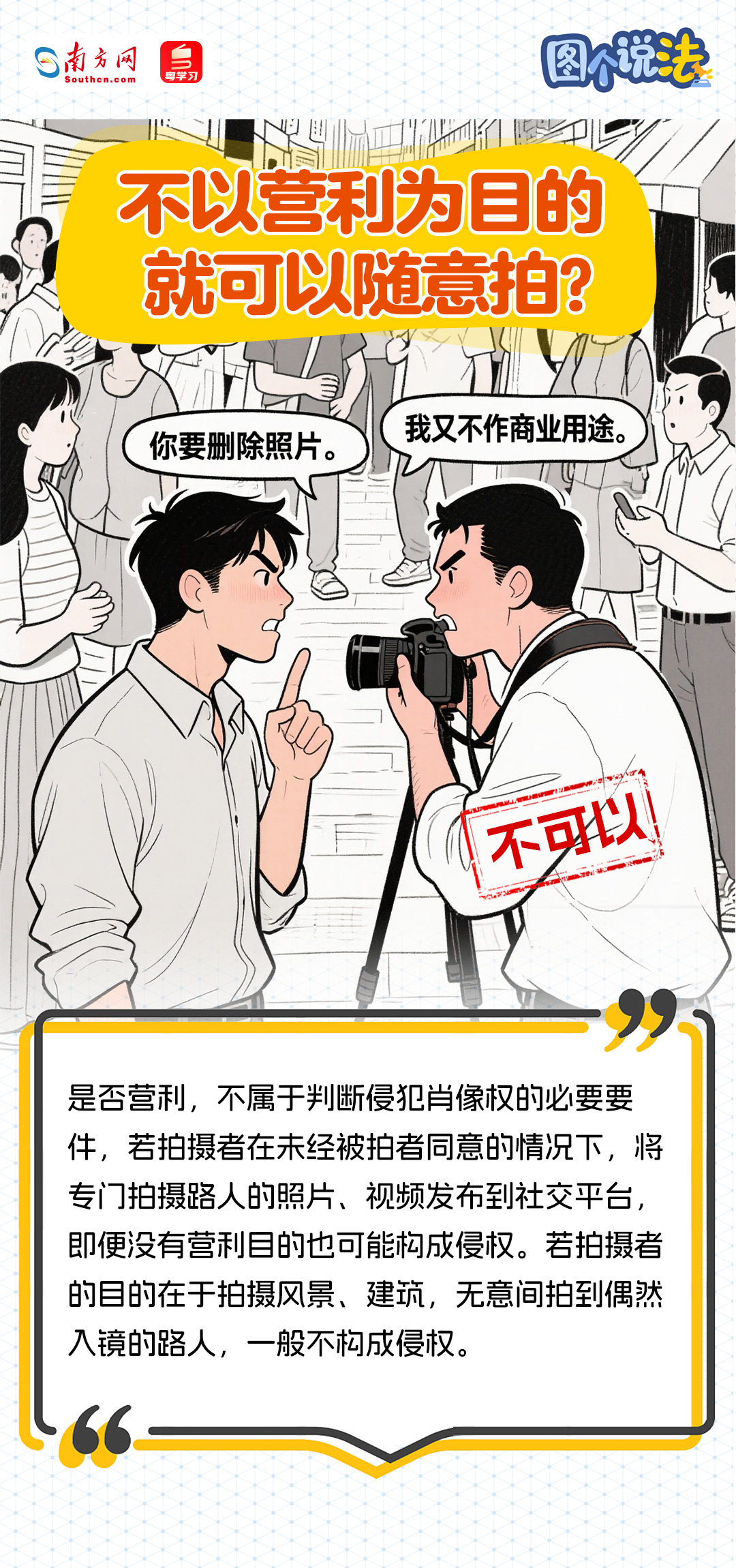 “此次事件可以引起大众对公共场合肖像权保护的关注。”廖建勋告诉记者,街拍照片、视频发布在社交媒体,带来一系列网络传播,且存在吸引流量、粉丝的目的,属于侵犯肖像权的行为,肖像权人有权要求拍摄者删除。