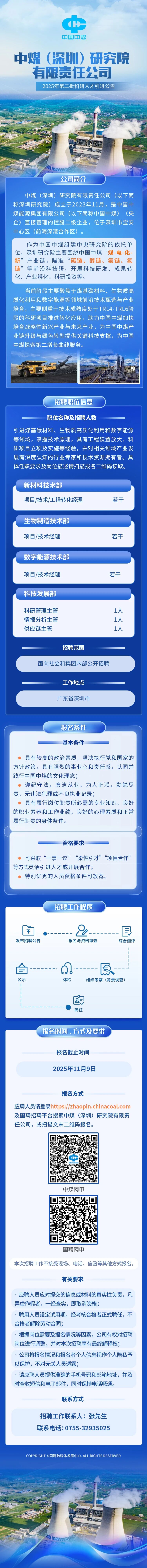 中煤(深圳)研究院有限责任公司2025年第二批科研人才引进公告