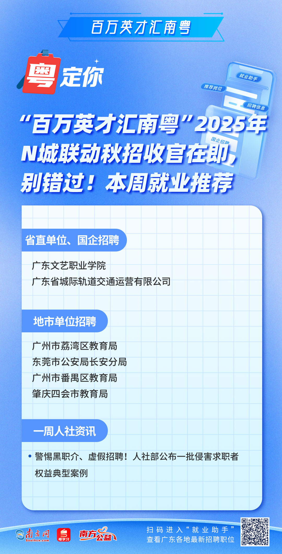 南方网、粤学习客户端本周为你梳理汇总的最新就业资讯来了!