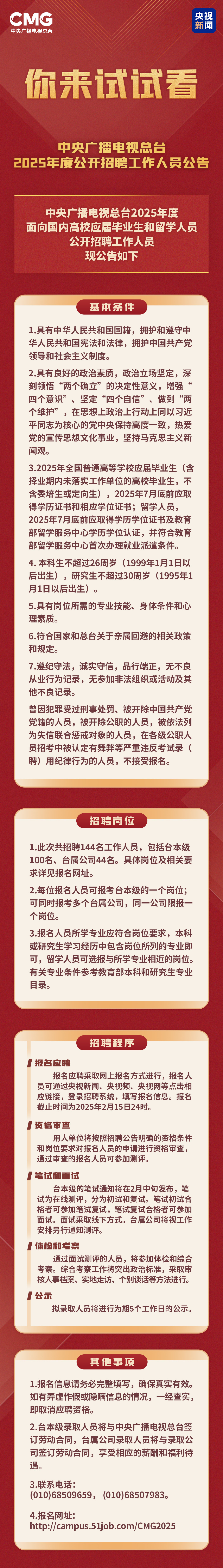 中央广播电视总台2025年度公开招聘工作人员公告