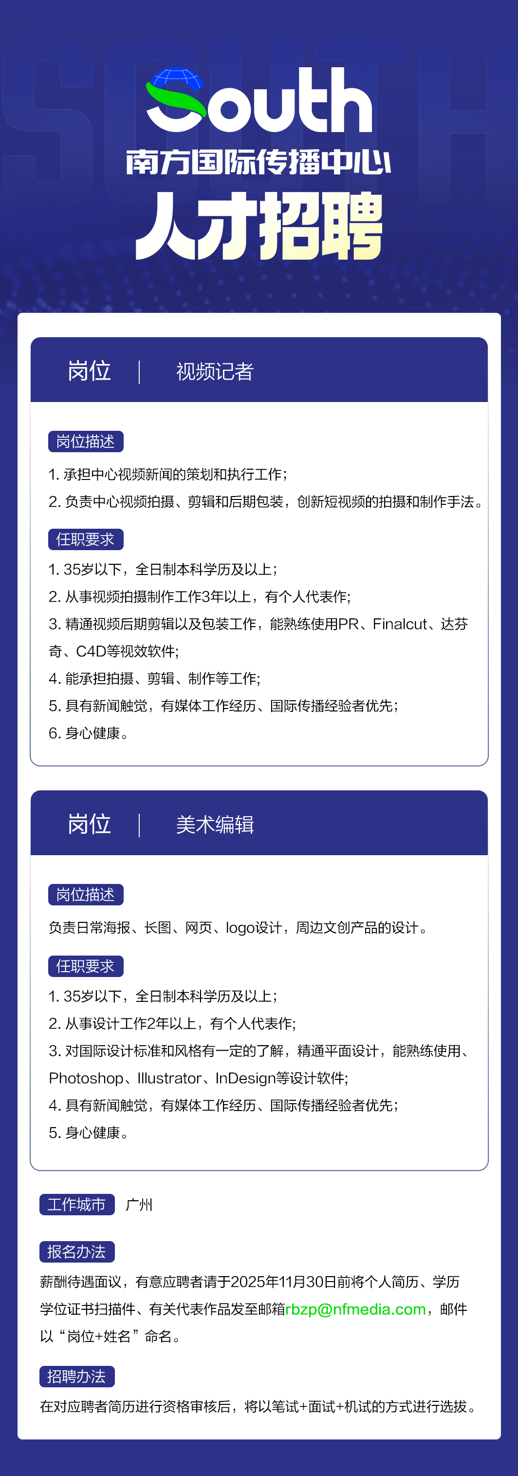 South致力于用英、葡、法等外文和粤语等方言为全球受众提供准确、及时的新闻报道和丰富的视听服务,80%以上的作品以设计海报、视频方式表达,还组织丰富多彩的文化活动,对外讲好中国故事、粤港澳大湾区故事和广东故事,成为粤港澳大湾区国际传播旗舰媒体、连接中外的重要桥梁。