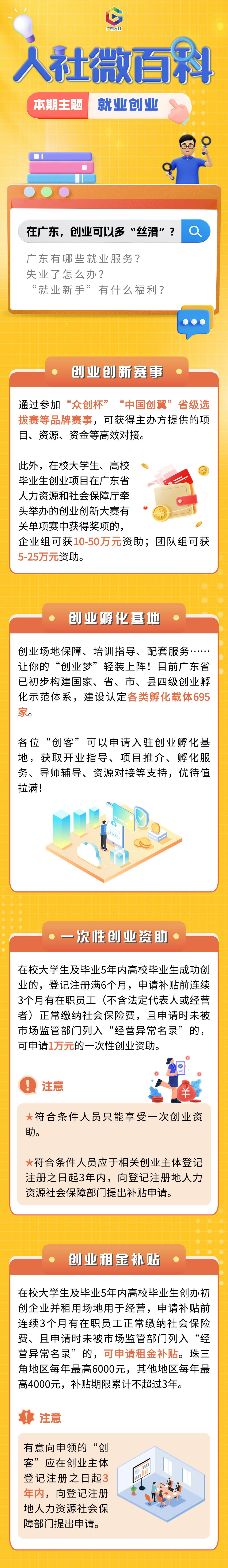 高校毕业生富有想象力和激情,是创新创业的有生力量。近年来,国家及广东省为高校毕业生创业营造了良好环境。本期《人社微百科》,我们来了解下在广东创业可以有多“丝滑”?