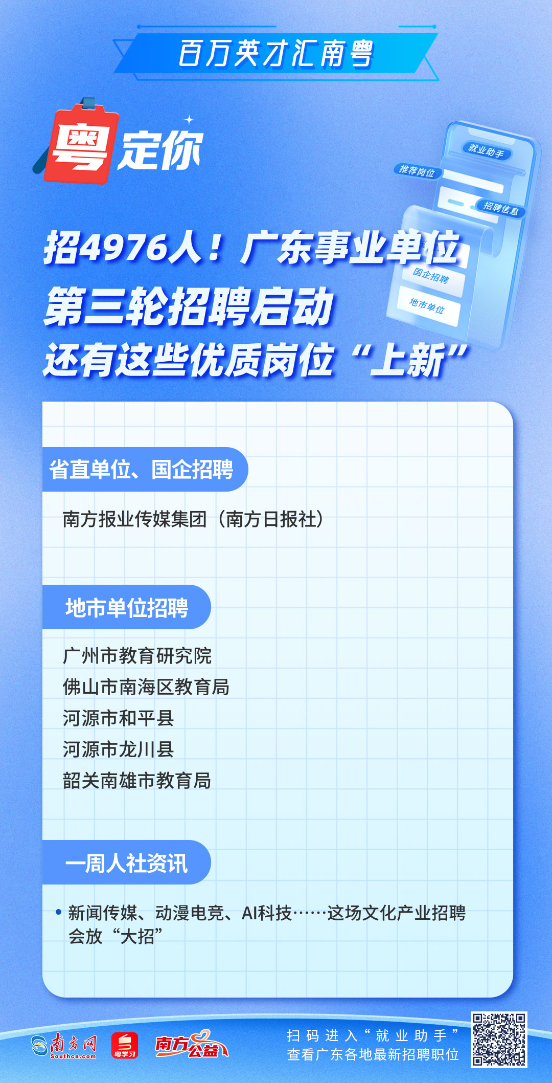 南方网、粤学习客户端本周为你梳理汇总的最新就业资讯来了!