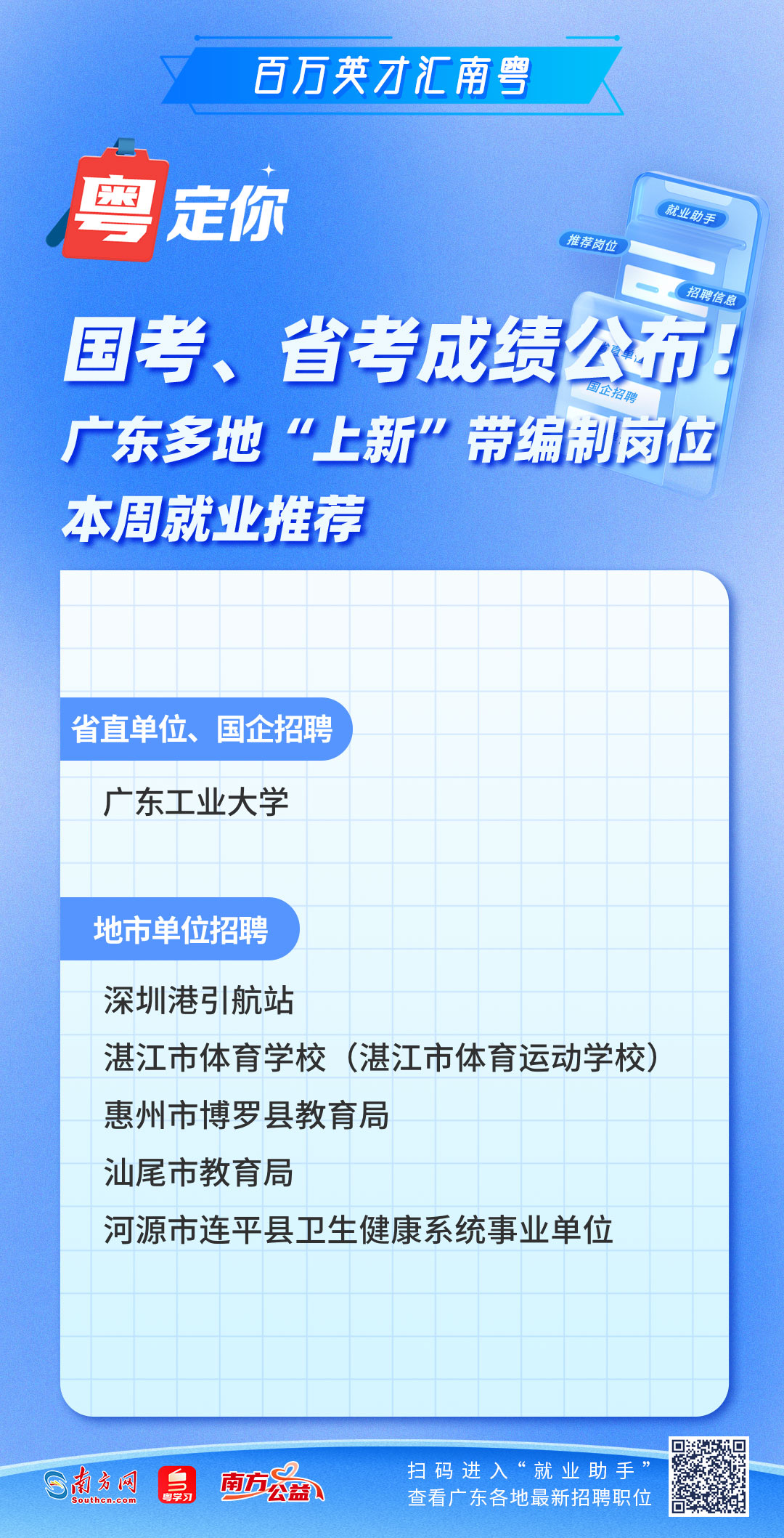 南方网、粤学习客户端本周为你梳理汇总的最新就业资讯来了!